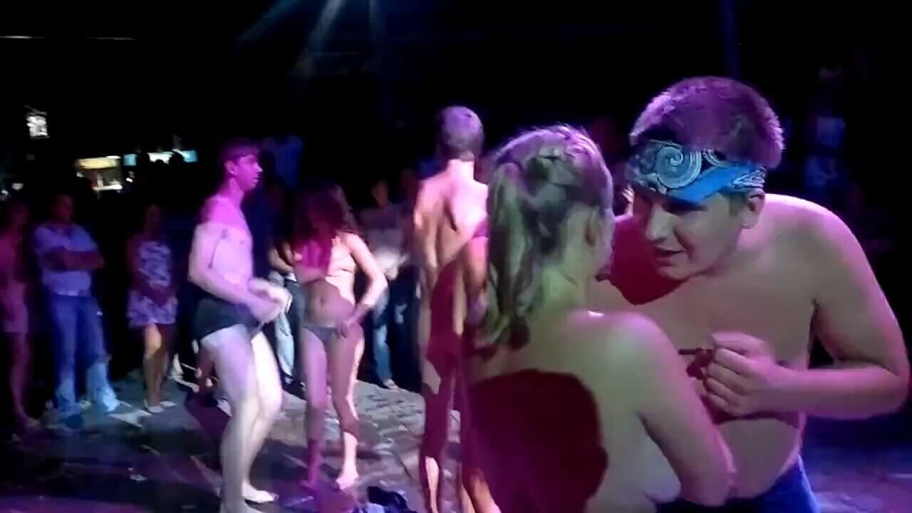 Секс оргия украинских студентов в ночном клубе Роза Ветров в Коблево. Девушки разделись с парнями под танцевальную музыку и занялись оральным сексом в позе 69. Главный приз - $25. В Николаевской области ведущий дискотеки уговорил посетителей раздеться и публично заняться сексом. На видео видно, как ведущий объявляет конкурс с призом в 200 гривен. Для получения этой суммы парам, находящимся на танцполе, сначала было предложено раздеться до трусов. Это условие выполнили три пары. Затем ведущий заявил, что надо раздеться полностью. На это согласились лишь две пары. После этого ведущий заявил, что для получения упомянутых 200 гривен участники должны заняться сексом в позе 69. Одна из пар согласилась, вручение приза на видео показано не было.