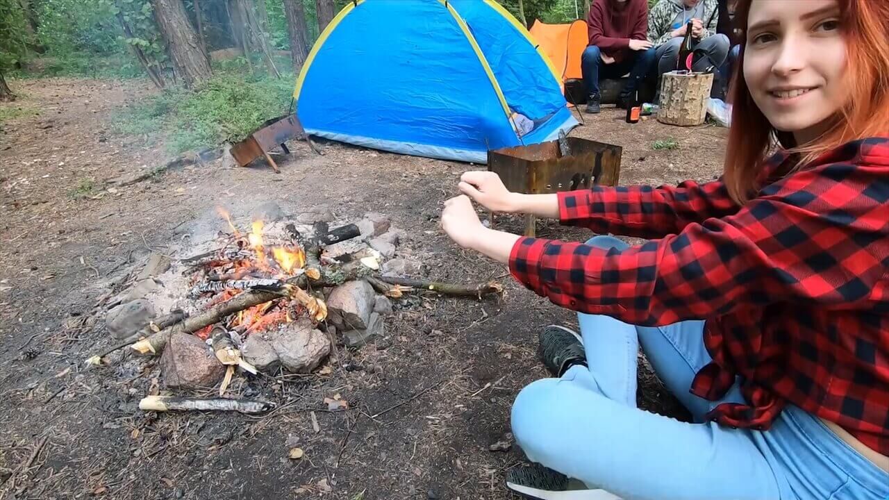 Секс с превосходной попкой в лесу у костра на природе...